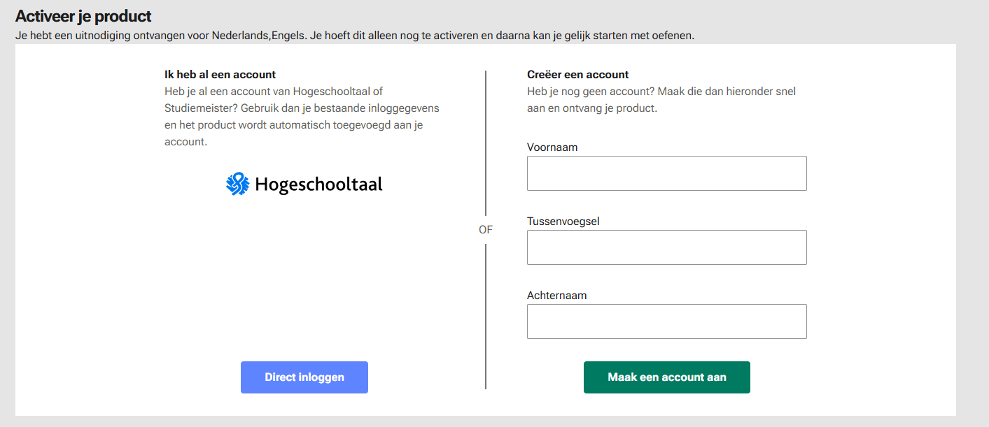 When students click on 'Activeer je product', they will see the following screen: